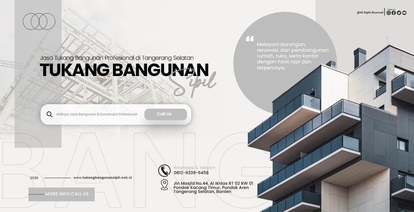 Tukang Bangunan Sipil adalah penyedia jasa konstruksi profesional di Tangerang Selatan yang melayani pembangunan dan renovasi berbagai jenis bangunan, seperti rumah tinggal, ruko, kontrakan, hingga perkantoran. Kami mengutamakan kualitas, ketepatan waktu, dan kepuasan pelanggan dalam setiap proyek yang dikerjakan.
